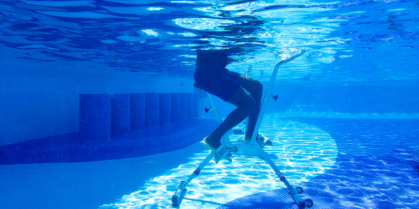 Une fois installés sur les vélos immergés, les participants enchaînent des exercices variés :